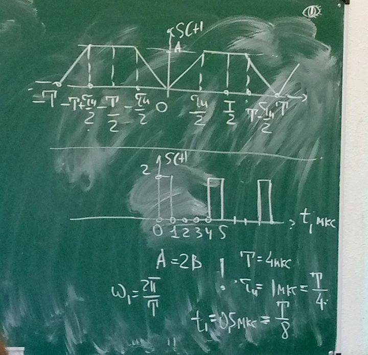 3) Имеется трапециминдальный сигнал. Необходимо найти его спектральную плотность с использованием стандартного решения с преобразованием Фурье и с использованием свойств преобразований Фурье